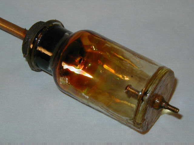 Here's a neat shot of the Bell Jar Audion in action during initial testing. That brilliant white you see is caused by the filament.