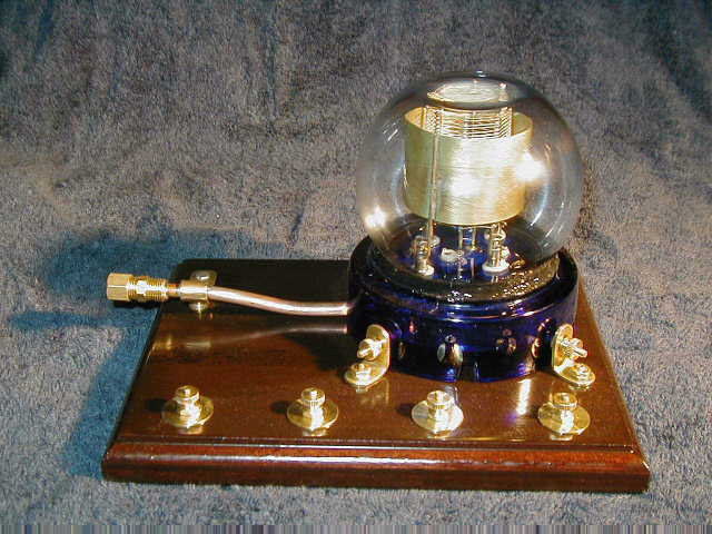 This is what I call the "Bell Jar Audion." Modeled after the Audion of old, this tube features planar construction, brass electrodes, and a custom feed-throughs which bring signals into the interior of the bulb.