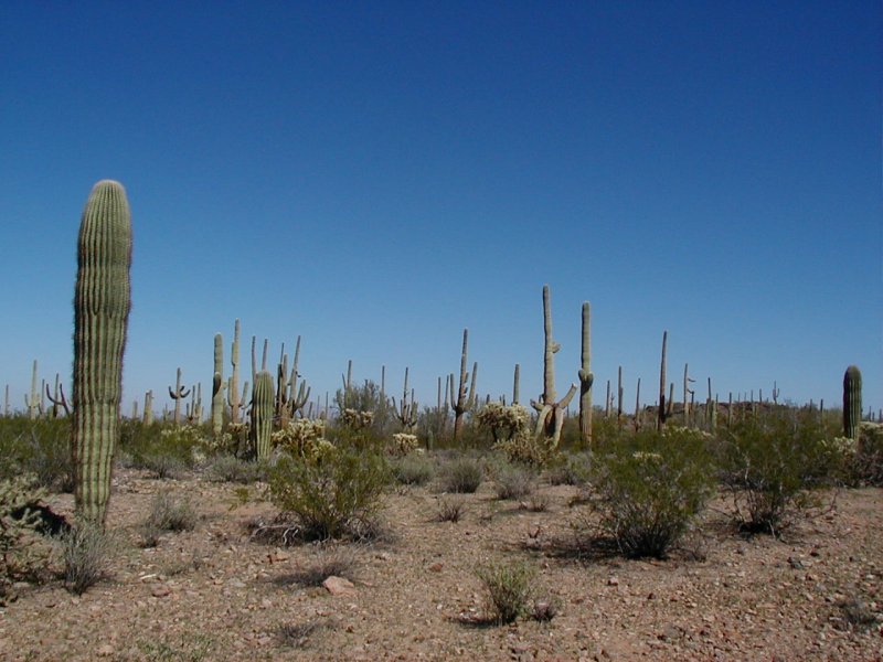 Farther down the road, we discovered another trail that forked off to the right. I shifted my pickup into four-wheel-drive, and followed the fork a couple of miles toward the foothills of some nearby mountains. The trail descended into and crossed a large, dry wash. On the far side, the trail rose again, steeply twisting and turning, ascending into the next set of hills. In theory, my truck had the clearance and power to navigate that rise, but we stopped short, contemplating whether we wanted to chance getting stuck on the eroded and pot-holed incline. No, this was to be a day of casual exploration, and we weren't out to prove anything. It seemed safer and more prudent to simply turn back... and that's when it happened. Beautiful isolation