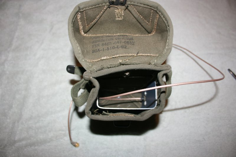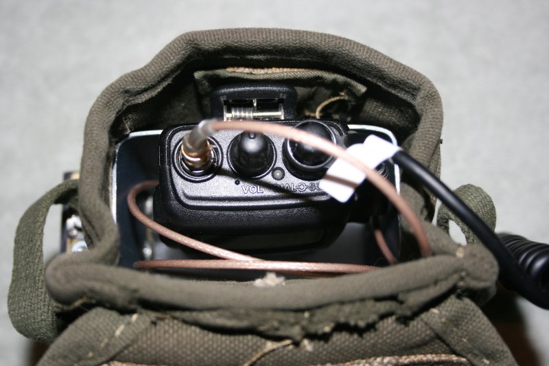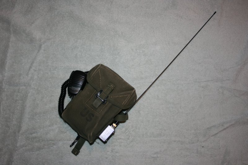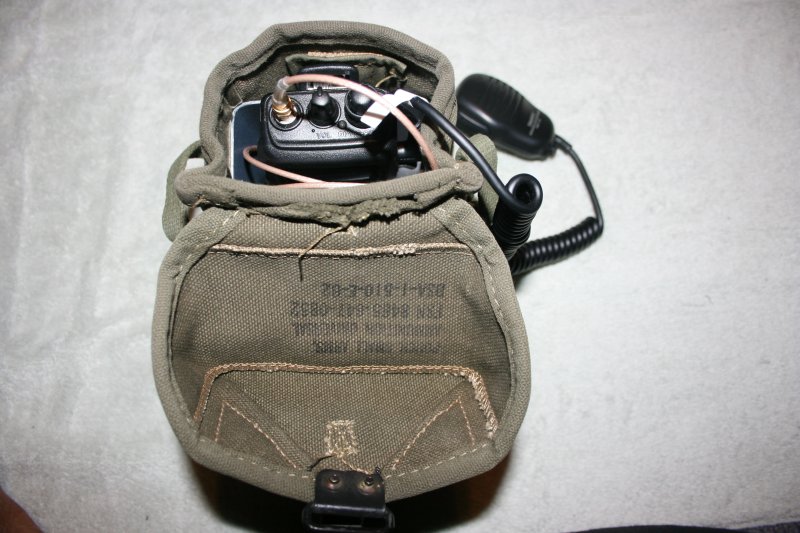 The truck became stuck in the sand, and the rear wheels buried themselves down to the axle. This should not have happened, and extricating ourselves should have been easy, but for one thing: We discovered that the transfer case was malfunctioning and the front wheels had become disengaged. I was left with two-wheel-drive only. We had not come unprepared. We had several gallons of water, a day-and-a-half worth of food, shovels, rope, tow straps, buckets, fuel, and other tools and materials. We jacked up the truck and lined the space beneath the rear tires with large, flat stones. We lowered the truck, and made an attempt to leave the wash. The truck moved a couple of feet and then bogged down again. Once more, we jacked up the truck, dug out the wheels, and inserted more rocks. We lowered the truck, engaged the transmission, and moved another foot or two. Again, the wheels sank in the sand. After an hour of this repetition in the blazing heat, it became apparent that we were likely to be stuck for some time. Absent mindedly, I flipped open my cell phone to let my wife know that we would be late... no bars! "Hmm, " I thought, "this is not good." Now, I hesitate to make this story more of a drama than it really was. First, we had plenty of food and water. My truck has a cap, and there were plenty of trees for shade, so we were not exposed. I had my GPS with me, so I knew where we were. More importantly, I knew that if we continued jacking the truck, shoveling sand, and paving our way, we would eventually get ourselves out. The worst-case scenario, if all else failed, was to wait until the evening and then hike our way out. Luckily, someone "up above" was looking out for us, because we suddenly heard the sound of an engine. An SUV appeared. The other vehicle's four-wheel-drive was functional, and he had no problem crossing the wash we were in. We used a tow strap to link my truck to his so that he could apply tension as I backed my way out. Inside of five minutes, we were free of the wash, back on the trail, and on our way. Considering Communications The experience left me considering the issue of communications. There are lots of 2-meter and 70-centimeter repeaters scattered on the mountaintops around here. If I'd had a radio, I could have reached my wife to let her know what was going on, and if necessary, I could have asked for assistance. I decided that this would justify buying a new HT. I spoke with people, considered product reviews on eHam.com and other sites, weighed my findings against my budget, and then purchased a Yaesu FT-60R. The FT-60R is well regarded by owners, and while it does not meet military specifications for shock and water resistance, most consider it solid and well-built. In addition to the radio, I purchased two accessories. First, the stock rubber antenna leaves something to be desired. On the advice of others, I purchased a longer "super flexible" whip. Simply swapping that antenna for the one that came with the FT-60R made a big improvement in the radio's ability to hit neighborhood repeaters. Second, I don't like radiating antennas near my head or my face. I purchased a hand mike that doubles as a speaker. I can wear the radio at my hip, and attach the mike/speaker to the lapel of my jacket. The sound quality coming out of the speaker is surprisingly good, and other operators report that the transmitted audio is equally clear. All in all, I was pleased with my purchase. Yet, when I pictured myself hiking through a thicket of bushes, or scrambling over boulders on a mountainside, I could easily envision my new rig being scratched, dropped, or smashed. And, as the antenna mount is an SMA connector, breaking it off would take no effort at all. I began to contemplate how I might "ruggedize" my rig. A Bag To Carry It In My first thought was to find a case or container to house the radio in. I wanted this case to provide a reasonable amount of abrasion and shock protection to the radio, and I wanted to be able to attach the enclosure to my belt. At the same time, I wanted to be able to access the radio for tuning or adjustments without too much trouble. In my case, the solution appeared in the form of some Vietnam-era Army-surplus. I found an M1956 Universal Small Arms Ammunition Pouch in a dusty box at a local hamfest and purchased it for three dollars. This pouch would form the basis for my "ruggedized" FT-60R, but similar pouches can be found at Army Surplus stores, on the Internet, and through surplus catalog sales. My pouch features so-called "ALICE" (All-purpose Lightweight Individual Carrying Equipment) clips, which allow it to be quickly and easily attached to my web belt. I liked what this pouch had to offer, but I wasn't completely satisfied, at least not yet.