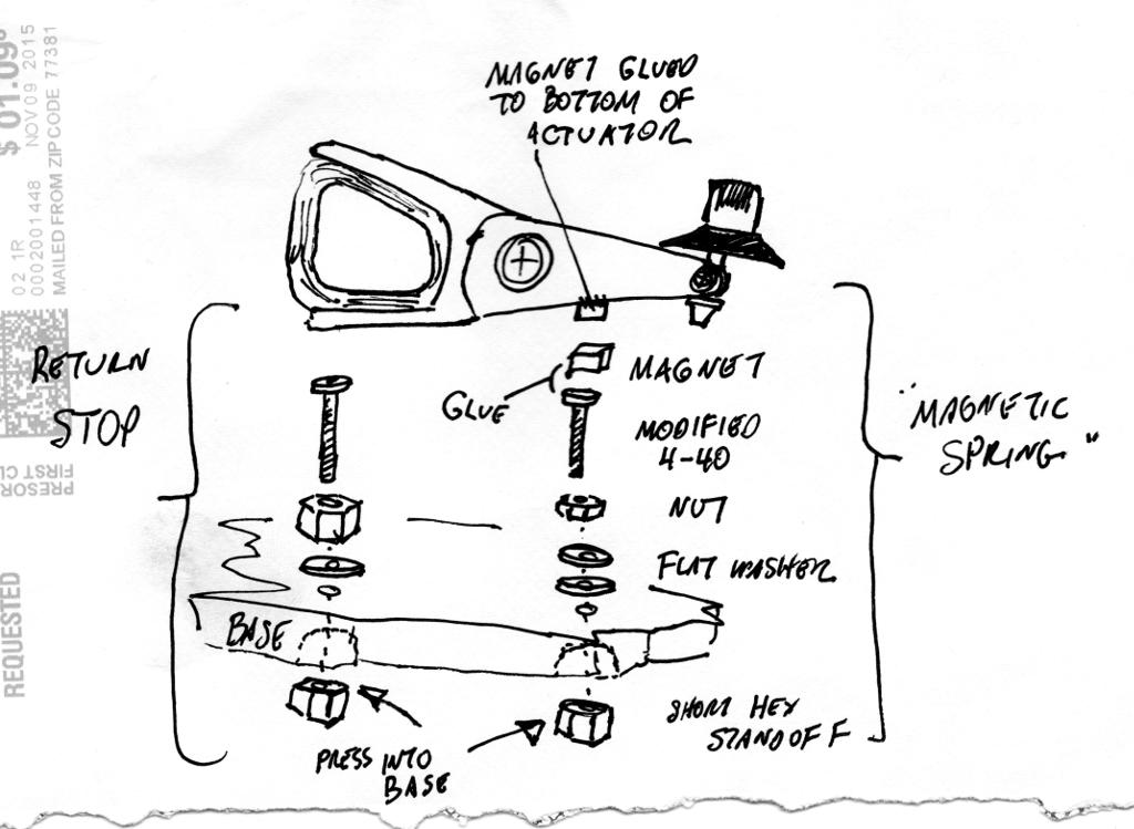 Figure 12: More "thinking paper." Details of the magnetic spring and return stop