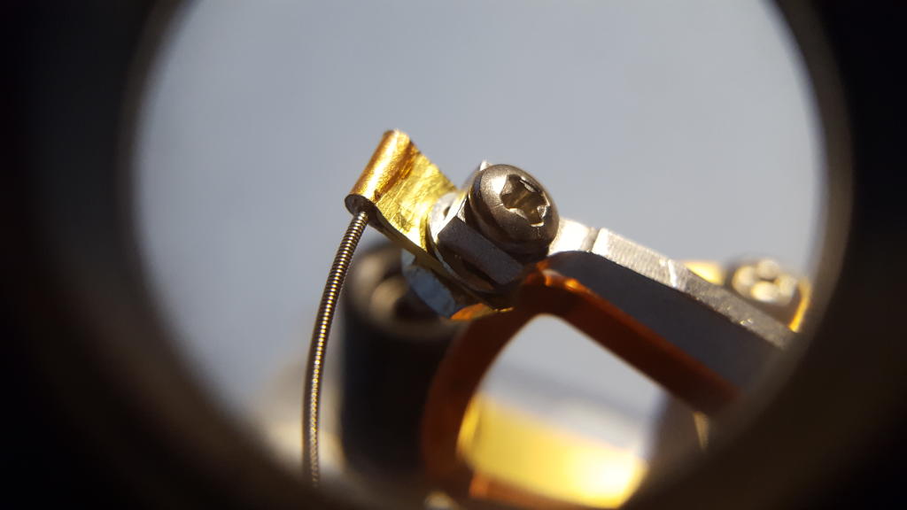 Figure 15: Terminating the guitar string with a brass shim stock tab