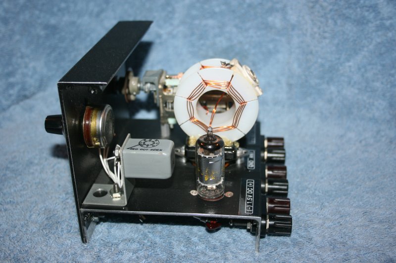 The tuning coil's plug was salvaged from an old plug-in relay.